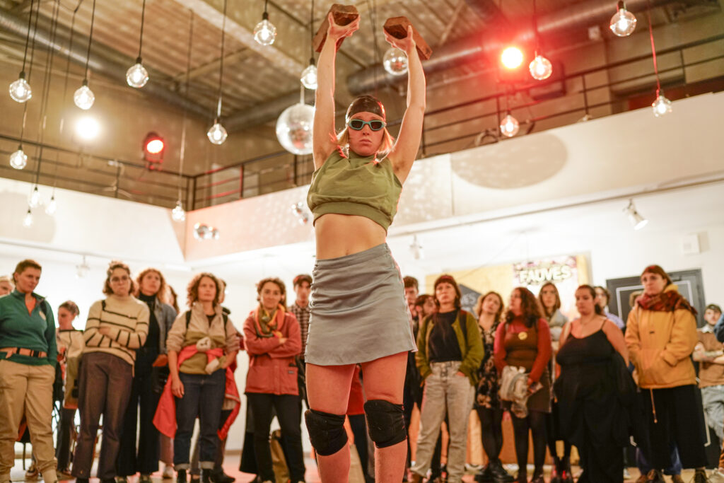 In addition, since completing her training, she has worked for and with several companies such as A.I.M.E by Julie Nioche, Verena Schneider, Tidiani N’Diaye, Contremarches, Les Noues and Jeanne Simone. She has worked on projects for the stage and the street as a performer, as well as on participatory projects with amateurs.